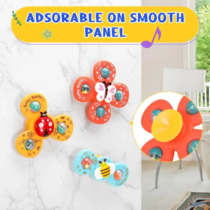 Strong Suction Cup Base: Equipped with powerful suction cups, these spinners easily attach to any smooth surface—high chair trays, bathtub walls, glass windows, car dashboards, or floor tiles—keeping them securely in place for uninterrupted play.