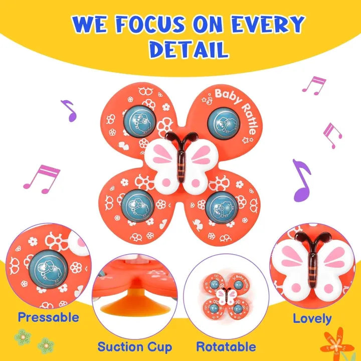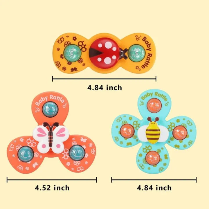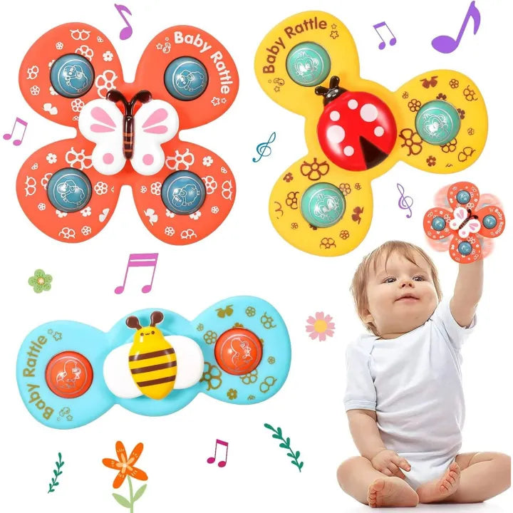 Engaging Sensory Play: Each spinner features vibrant colors, fun animal designs (like a bee, butterfly, and ladybug), and satisfying spinning motion that captures your baby's attention. The gentle whirring and visual stimulation promote sensory development and curiosity.