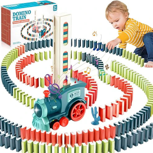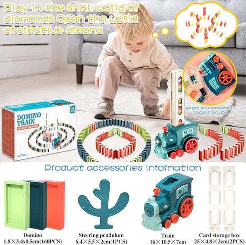 Effortless Automatic Setup: Say goodbye to the tedious process of manual placement! The battery-powered train automatically spaces and sets up a perfect line of dominoes, ready for the satisfying push and tumble.